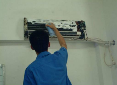 | 黄石市空调维修师傅给黄石市用户上门维修清洗空调。 |